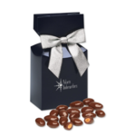 These Chocolate Covered Almonds are made with real cocoa. By combining the rich flavor of premium chocolate with toasted California almonds that are high in fiber and loaded with vitamin E, we’ve created a delicious healthy snack that you can enjoy without feeling guilty. Each box contains five-ounces. Your choice of color gift boxes are foil-stamped with your logo. Please see details below for imprint color availability.
